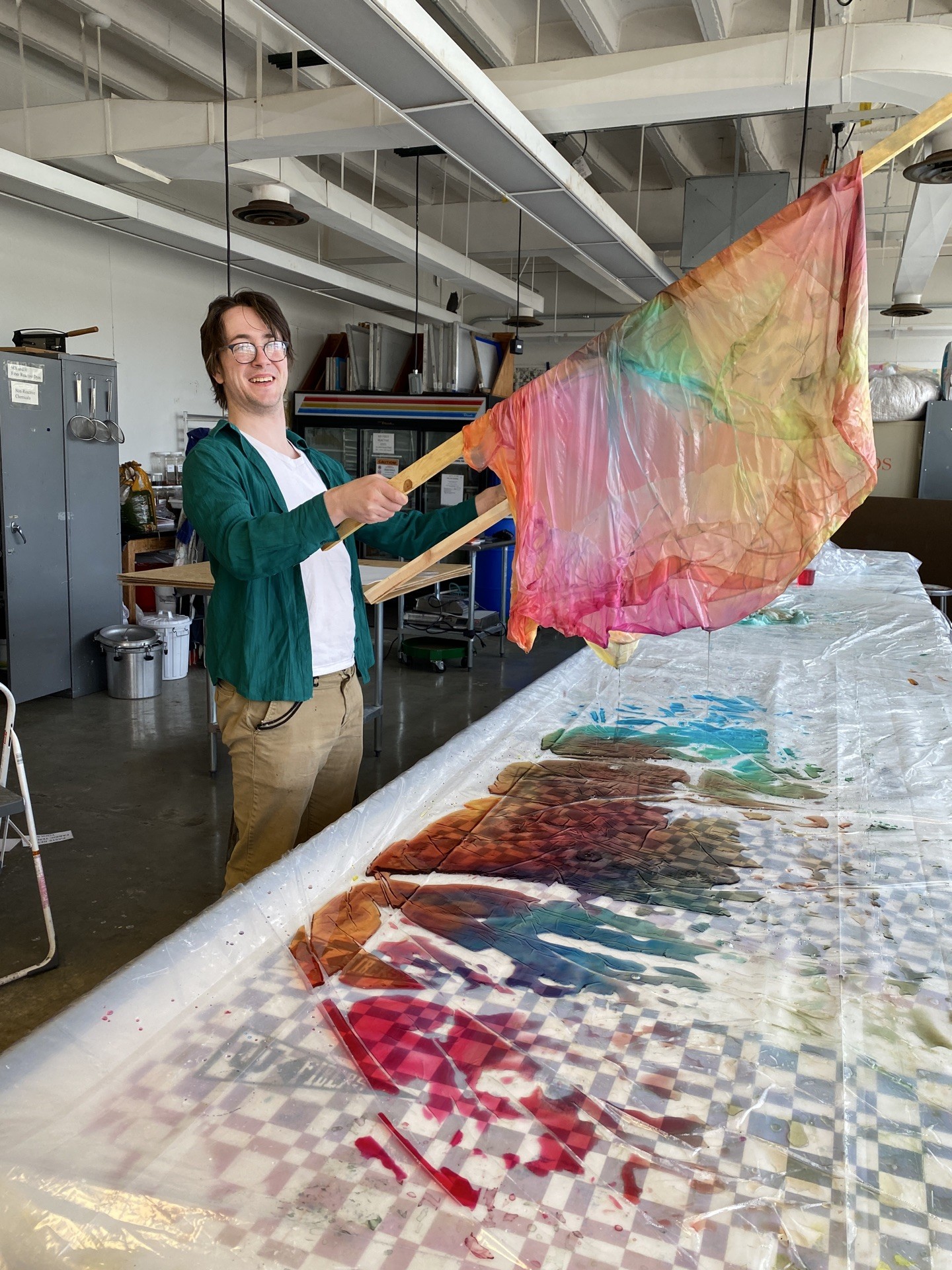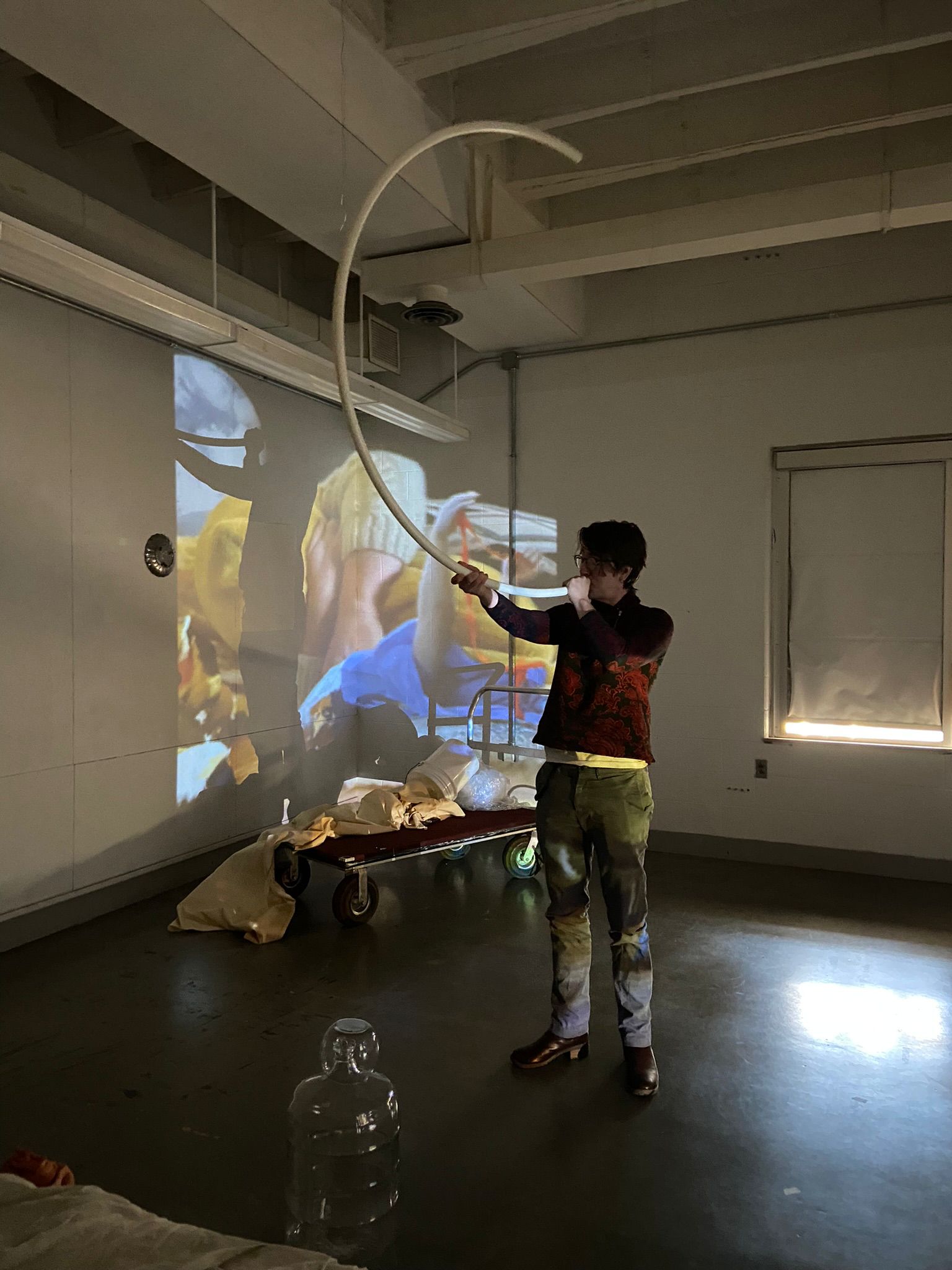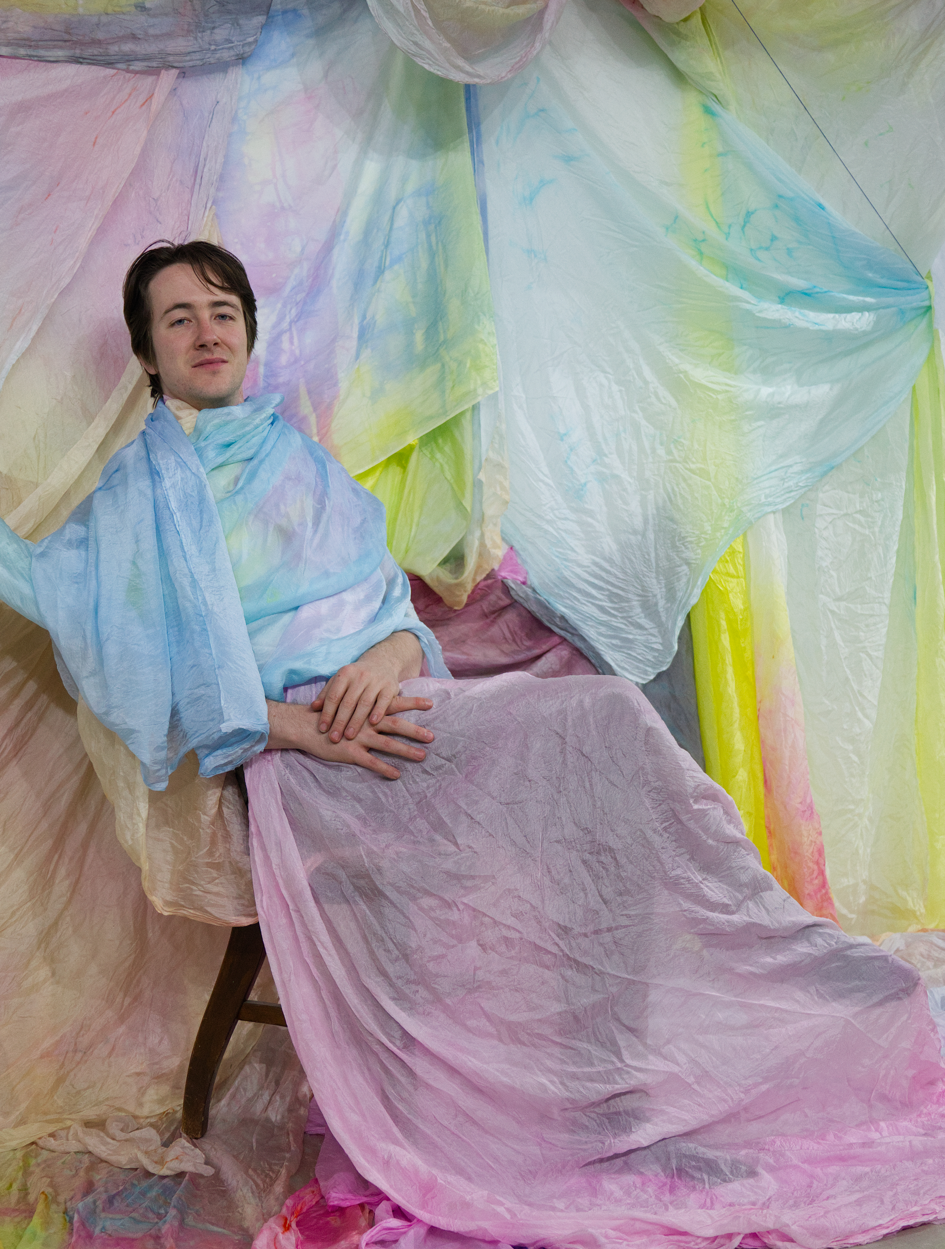 Shawn Bailey, born in 1994 in Syracuse, New York, and currently based in Bloomington, Indiana, is a multidisciplinary artist working with video, fiber, and performance. They create large-scale video installations and silk fiber wall sculptures printed with 3D renders, using the same materials as costumes and sculptural elements in their video performances. Their work examines the material nature of knowledge, how it is formed and transmitted, and the limits of systems that attempt to define or measure life, death, and the unknown.